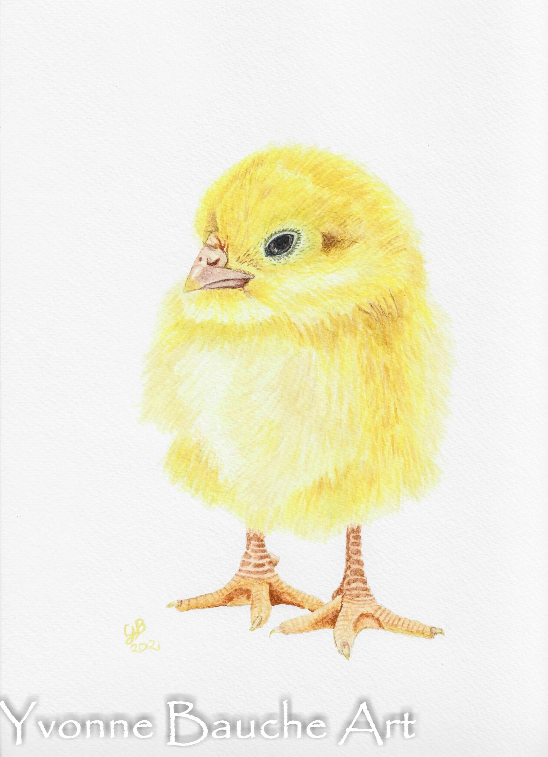 This was my second attempt at the chick; the first one I tried was way too small to get the detail I wanted. I enjoyed the process of building up all those fluffy feathers, and capturing the detail on those oversized feet.